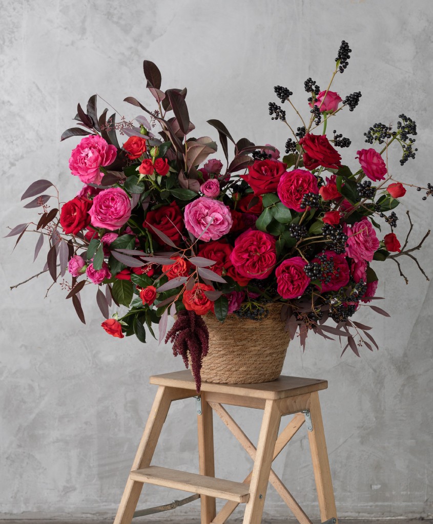 Композиция в корзине, "Гранатовый браслет"
