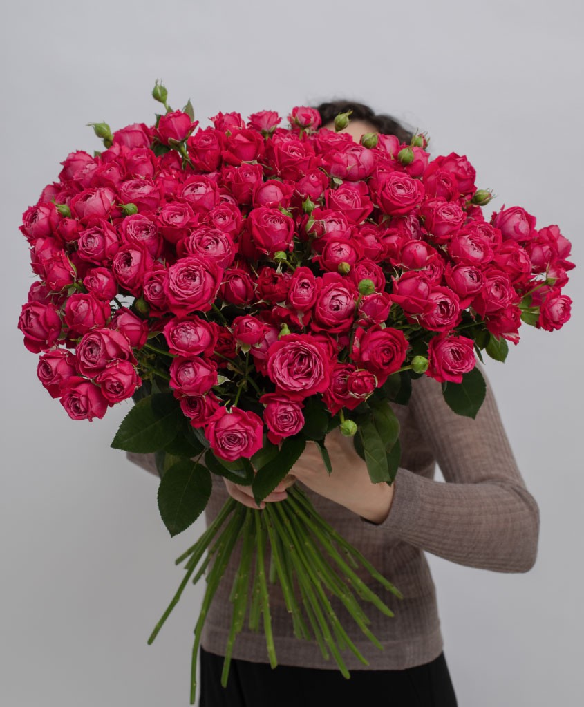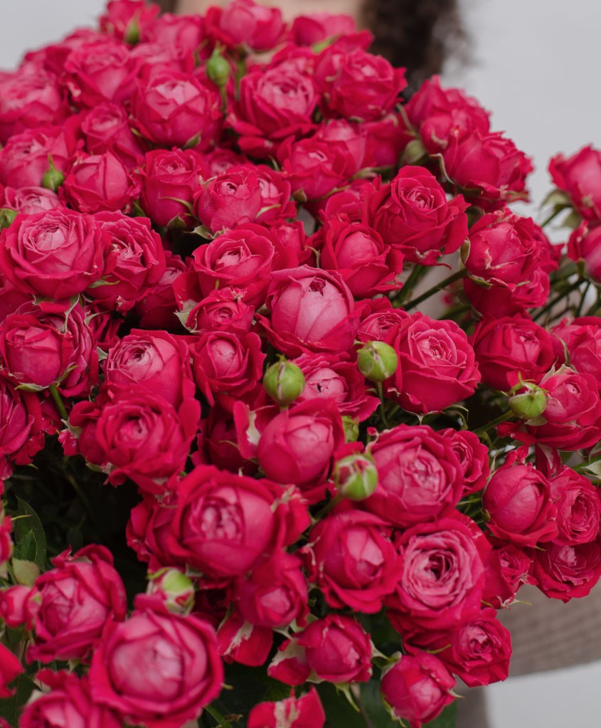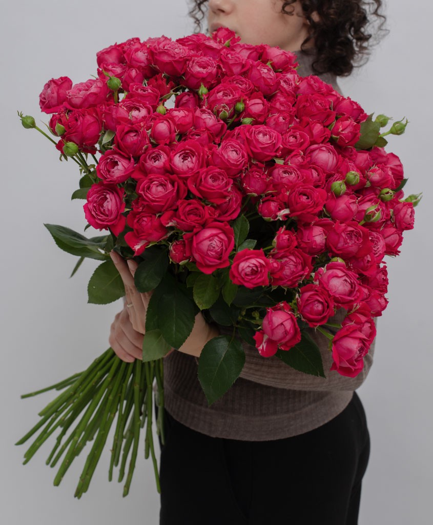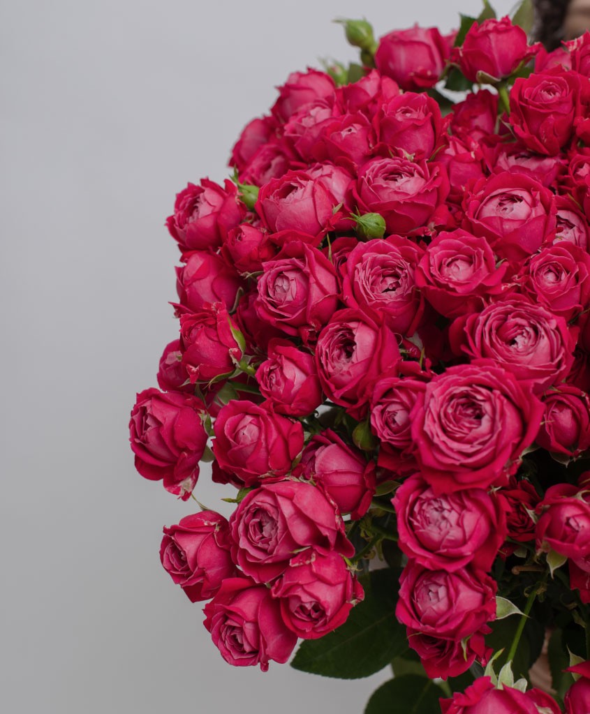 Кустовые пионовидные розы ярко-розового оттенка